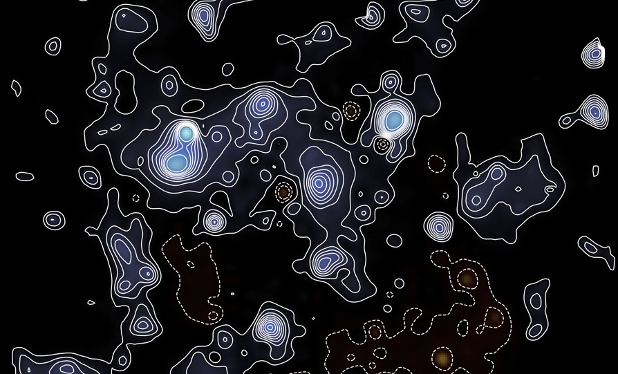 Pimeä aine voi painovoimansa avulla taivuttaa avaruutta ja siten myös valoa. Tutkijat pystyivät rakentamaan pimeän aineen kartan analysoimalla, miten eri lähteistä saapunut valo on taipunut matkansa aikana.
