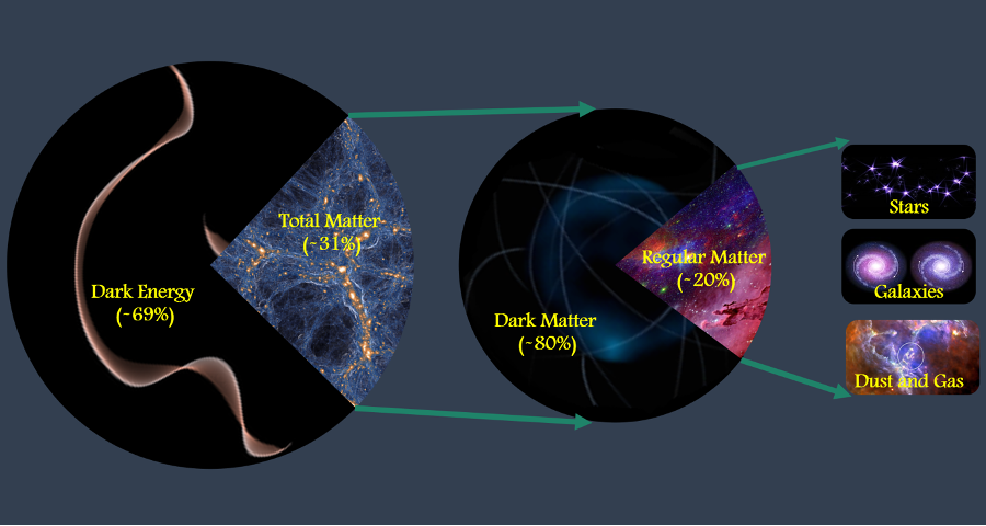 "Koska kuitenkin tiedämme, että 80 prosenttia materiasta on pimeää ainetta, todellisuudessa suurin osa aineesta ei koostu vetyatomeista vaan sellaisesta materiasta, jota kosmologit eivät vielä ymmärrä."