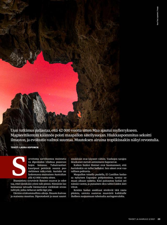 Aika ajoin Maan magneettikentän etelä- ja pohjoisnapa vaihtavat paikkoja. Tällä viikolla julkaistussa Tähdet ja avaruus -lehdessä kerrotaan, että viimeisin kunnon keikaus oli vaikutuksiltaan dramaattisempi kuin kukaan oli osannut aavistaakaan.