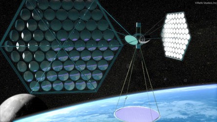 Solaren haaveilee lähelle geostationaarirataa sijoitettavasta peräti kilometrin halkaisijaltaan olevasta peilistä voimaloineen. Ohuesta mylar-kalvosta valmistettu peili ohjaisi auringonvalon apupeilin kautta huomattavasti pienemmille aurinkokennoille. Sähköteho siirrettäisiin edelleen maanpinnalle radioaalloilla.