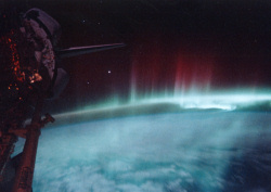Hiljattain julkaistun tutkimuksen mukaan huimaa vauhtia kiitävät avaruuden hiukkaset kohtaavat hitaammin liikkuvat maapallon tuulet noin 118 kilometrin korkeudella.
