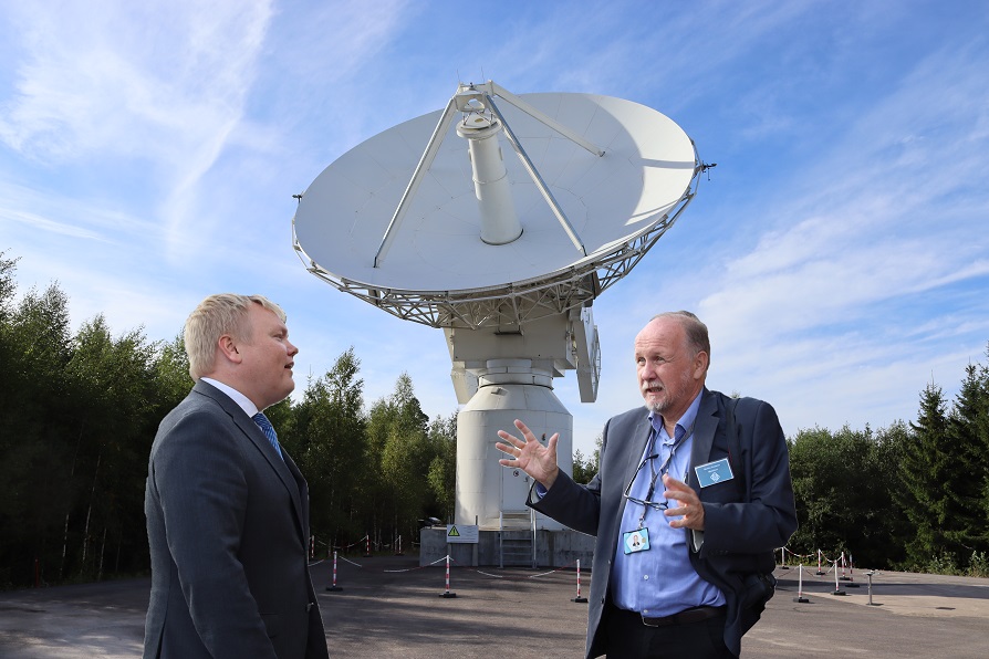 Laitteiston uudistusvaiheen päätöstä juhlittiin Kirkkonummen Metsähovissa tänään. Maa- ja metsätalousministeri Antti Kurvinen käynnisti uuden radioteleskoopin juhlavieraiden edessä.