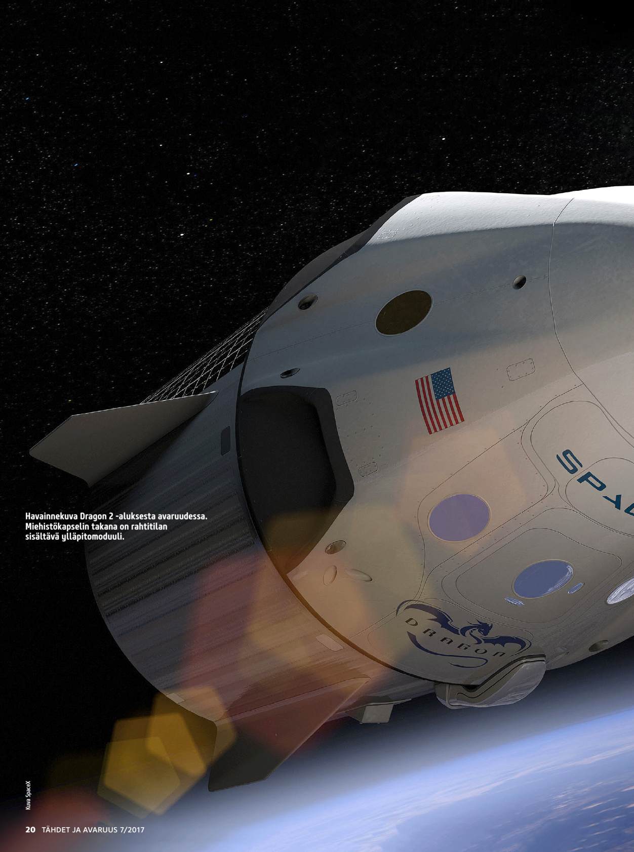 Dragon 2 lensi avaruuteen onnistuneesti miehitettämättömänä vuosi sitten, jolloin se testasi telakoitumista asemaan. Huhtikuussa testauksessa tapahtunut räjähdys kuitenkin lykkäsi tuntuvasti kehitysohjelmaa.