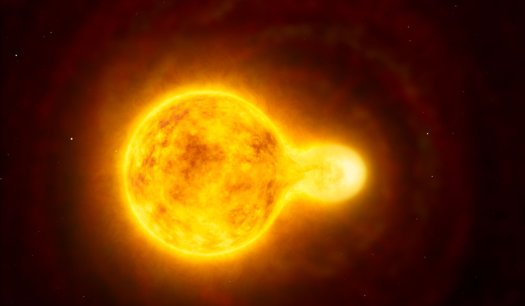 Keltaiset hyperjättiläistähdet ovat hyvin harvinaisia. Havainnot paljastivat tutkitulta tähdeltä myös niin lähellä sijaitsevan kumppanitähden, että tähdet koskettavat toisiaan. Yhdessä niistä muodostuu muodoltaan maapähkinää muistuttava tähti.