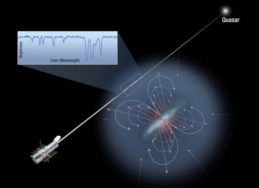 Tähtiä synnyttävän galaksin kiekkoa ympäröivä ohut pallomainen ainepilvi sisältää runsaasti hiiltä ja happea. Uuden tutkimuksen mukaan aineiden hidasta liikettä voi kutsua kosmiseksi kierrätysjärjestelmäksi.