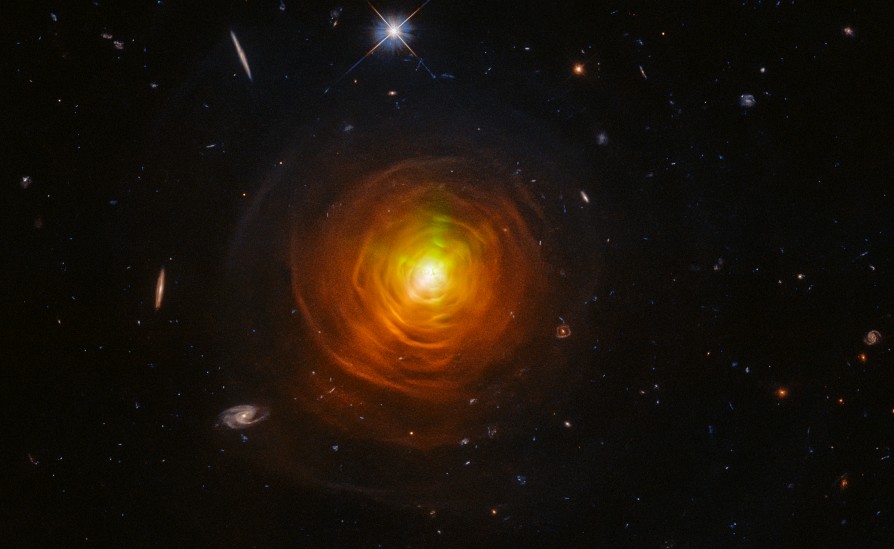 Hubble-avaruusteleskoopin uusin julkaistu otos on varsinainen kuva-arvoitus. Halloween-juhlakuvassa elinkaarensa loppuvaiheessa oleva epävakaa punainen jättiläistähti yskähtelee ympärilleen hiilipölyä.