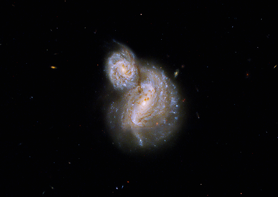 Vaikka kuvan galaksit ovat päällekkäin, ne ovat erillisiä kohteita, jotka sattuvat vain olemaan samalla näkölinjalla. Noin 800 miljoonan valovuoden päässä sijaitseva galaksipari tunnetaan nimillä IC 4271 ja Arp 40.