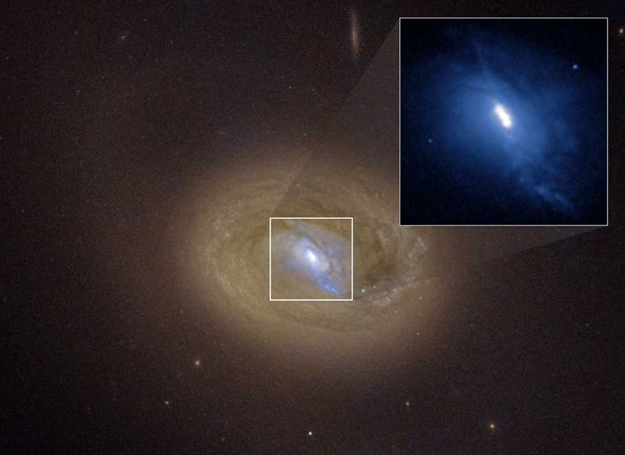 Galaksiyhdistymän MCG-03-34-64 ydin loistaa kirkkaana mustien aukkojen parin kuumentaessa ympäröivää kaasua. Löytö tehtiin sattumalta, kun Hubblen kuvista ilmeni kolme kompaktia valonlähdettä linjassa galaksin keskustassa.