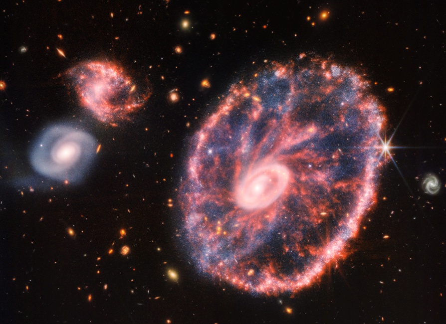 James Webb -avaruusteleskoopin uudessa kuvassa komeilee Kärrynpyörägalaksi