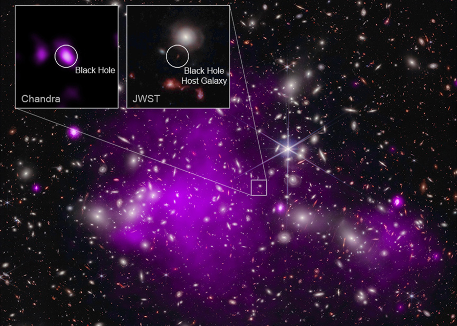 Musta aukko sijaitsee UHZ1-nimisessä galaksissa, joka näkyy mitättömänä pisteenä Webb-avaruusteleskoopin kuvassa. Chandra-röntgenteleskooppi havaitsi kohteesta tulevan röntgensäteilyä, mikä on signaali ainetta aktiivisesti syövästä supermassiivisesta mustasta aukosta.