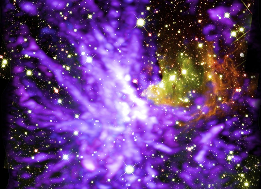 Yhdistämällä usean aallonpituusalueen havaintoja saadaan monipuolisempi kuva taivaan kohteista. Oheinen kuvapanoraama paljastaa tähtien synnyn ainepilvistä nuoressa tähtijoukossa.