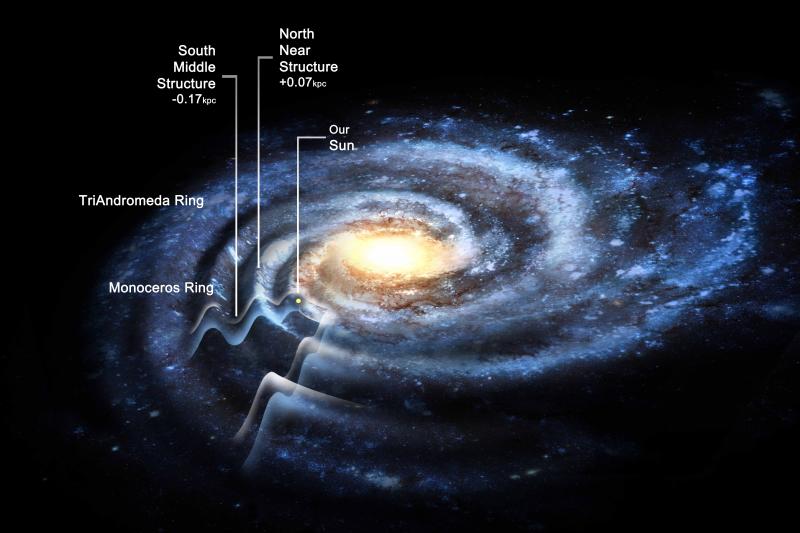 "Tutkijat ovat havainneet, että Linnunradan tähtitiheys laskee voimakkaasti 50 000 valovuoden etäisyydellä galaksin keskustasta, mutta 60 000 valovuoden etäisyydellä alkaa uusi tähtien rengas", kuvailee Yan Xu Kiinan kansallisesta observatoriosta. "Renkaalta näyttävä rakenne on oikeasti aalto kiekossa. Voi olla, että vielä kauempana on lisää aaltoja, joita emme vielä ole havainneet."