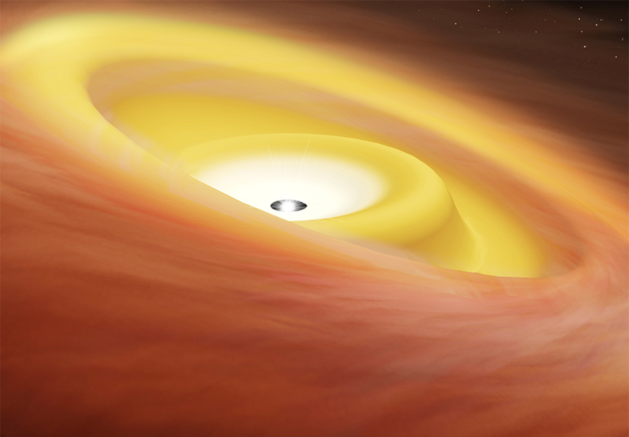 Nyt ryhmä tutkijoita on löytänyt hyvin nuoren vääristyneen ainekiekon, jossa on kaksi eri tasoissa kiertävää osaa. Pilven keskellä oleva tähti L1527 on vain muutaman kymmenen tuhannen vuoden ikäinen.