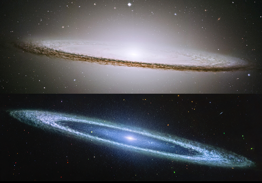 Toisin kuin näkyvän valon kuvissa, Webbin keski-infrapunassa ottamassa kuvassa galaksilla ei näy pullistunutta, hohtavaa ydintä. Sen sijaan esillä on tasainen kiekko.