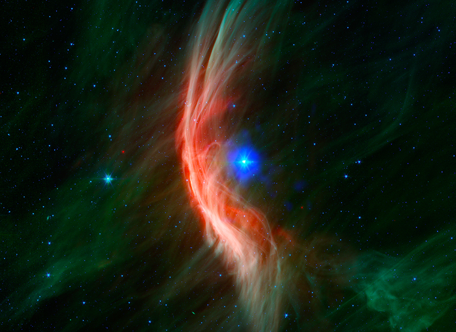Todennäköisesti supernovaräjähdys sinkautti Zeta Ophiuchin matkaan. Nyt tähti vaeltaa avaruudessa sytyttäen etupuolelleen tähtituulen aiheuttaman shokkirintaman.