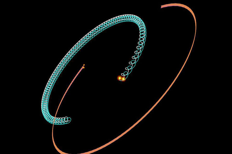 Tuplakaksoistähdessä HD 74438 lähekkäiset tähtiparit kiertävät toisiaan laajalla radalla.