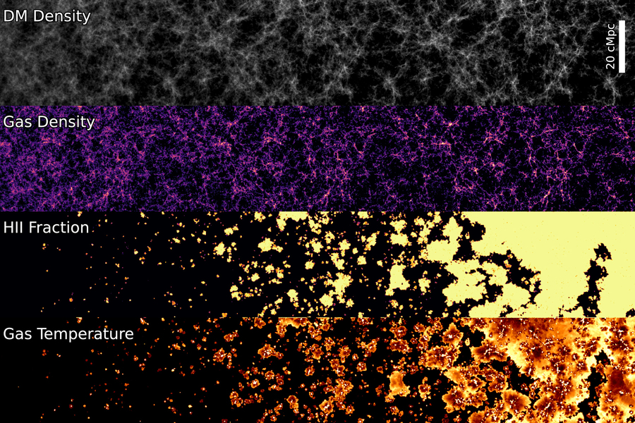 "Thesan seuraa, kuinka ensimmäisten galaksien valo vuorovaikuttaa kaasun kanssa ensimmäisten miljardien vuosien aikana muuttaen universumin neutraalista ionisoiduksi", sanoo Rahul Kannan Harvard-Smithsonianista.