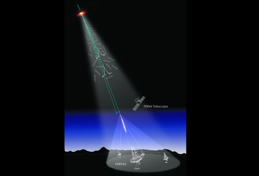 Menetelmässä hyödynnettiin ilmiötä, jossa hyvin etäisten supermassiivisten mustien aukkojen tuottamat gammasäteet törmäävät ekstragalaktisen taustavalon fotoneihin. Törmäyksessä molemmat fotonit annihiloituvat ja syntyy elektroni-positroni-pari.