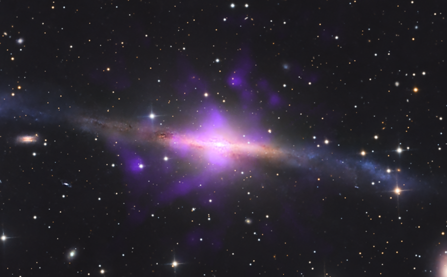 Poikkeuksellisen galaksin jäljille päästiin, kun sillä huomattiin olevan neljä suurta kaasusuihkua. Lisähavainnot paljastivat kyljellään olevan pölyrenkaan galaksin ytimessä.