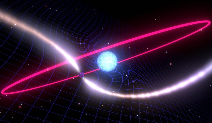 Koska neutronitähti lähettää radiopulsseja säännöllisin väliajoin, tutkijat pystyivät tekemään tarkkoja havaintoja sen liikkeistä. Mittaukset paljastivat, miten kääpiötähden aiheuttama avaruuden pyöriminen vaikuttaa neutronitähden kiertorataan.