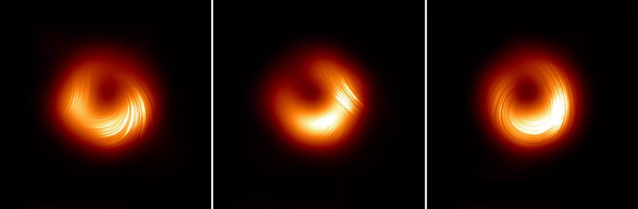 Event Horizon -teleskoopin kuvissa valon polarisaatio vaihtaa suuntaa supermassiivisen mustan aukon ympärillä. Löytö osoittaa, että aukon lähellä olevat magneettikentät muuttuvat ja kehittyvät.