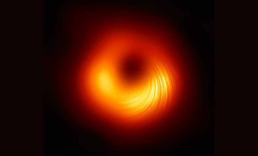 EHT-teleskoopin kuvassa viivat näyttävät säteilyn polarisaation suunnan, joka puolestaan riippuu mustaa aukkoa ympäröivän magneettikentän suunnasta.