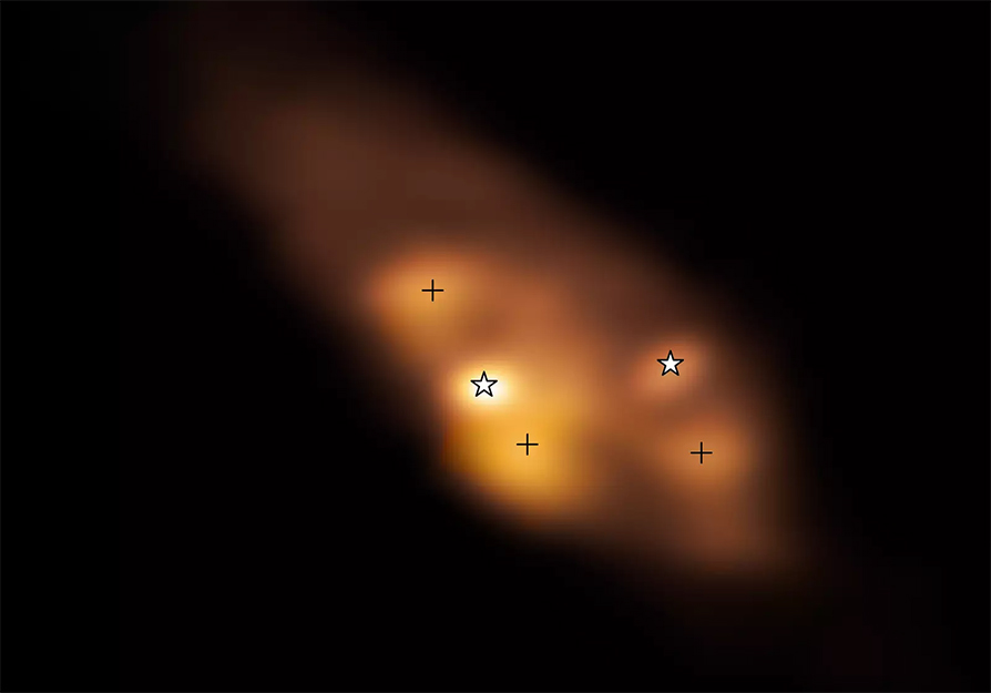 Tutkijat huomasivat, että nuori kaksoistähtipari eli kaksi prototähteä eivät yllättäen olleetkaan sitä ympäröivän ainekiekon ainoa lämmön lähde. ALMAn poikkeuksellisen tarkoissa kuvissa hohti jotain muutakin.