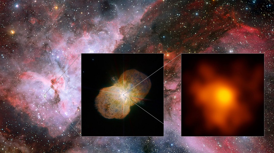 Oheisessa kuvassa näkyy sumun keskelle verhoutunut tähtipari. Se luo tähtituulia, joiden nopeus on jopa kymmenen miljoonaa kilometriä tunnissa. Uusissa havainnoissa myös tämä nopeus tarkentui, mikä auttaa parantamaan simulaatiomalleja suurimassaisten tähtien olosuhteista.
