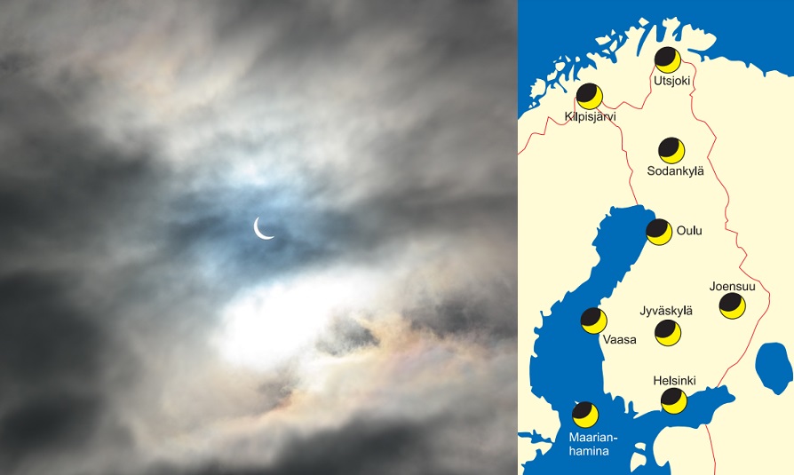 Tiistaina 25.10. tapahtuva auringonpimennys näkyy Suomessa suurimpana idässä ja pohjoisessa. Utsjoella Auringon halkaisijasta peittyy parhaimmillaan 69 prosenttia ja Maarianhaminassa 59 prosenttia.