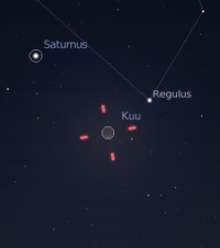 Kuu sijaitsee tapahtuman aikaan länsitaivaalla Etelä-Suomesta katsottuna noin 17 asteen korkeudella. Kuu on tuolloin Leijonan tähtikuvion alapuolella, lähellä Saturnusta ja Regulus-tähteä.