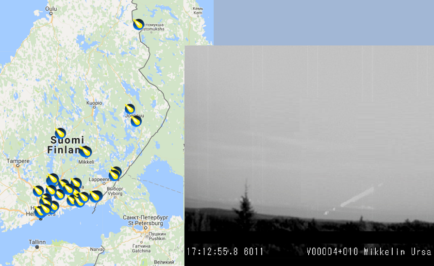 Kaukaa Suomesta asti nähtynä tulipallo vastasi kirkkaudeltaan vain iltatähteä eli planeetta Venusta. Kappaleen lento piirsi hennon valojuovan Aki Taavitsaisen ja Jani Lauanteen meteorikameraan Mikkelissä.