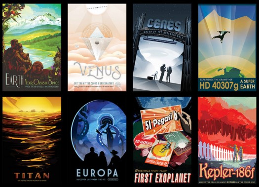 Nasa on julkaissut sarjan tieteiskuvitelmahenkisiä julisteita. Niiden aiheissa matkataan aurinkokunnan matkakohteisiin ja eksoplaneetoille 1900-luvun alkupuolen mukaan tyylitellyssä taiteessa. Nasa tarjoaa julistekuvat isossa koossa avaruusharrastajien itse tulostettaviksi.