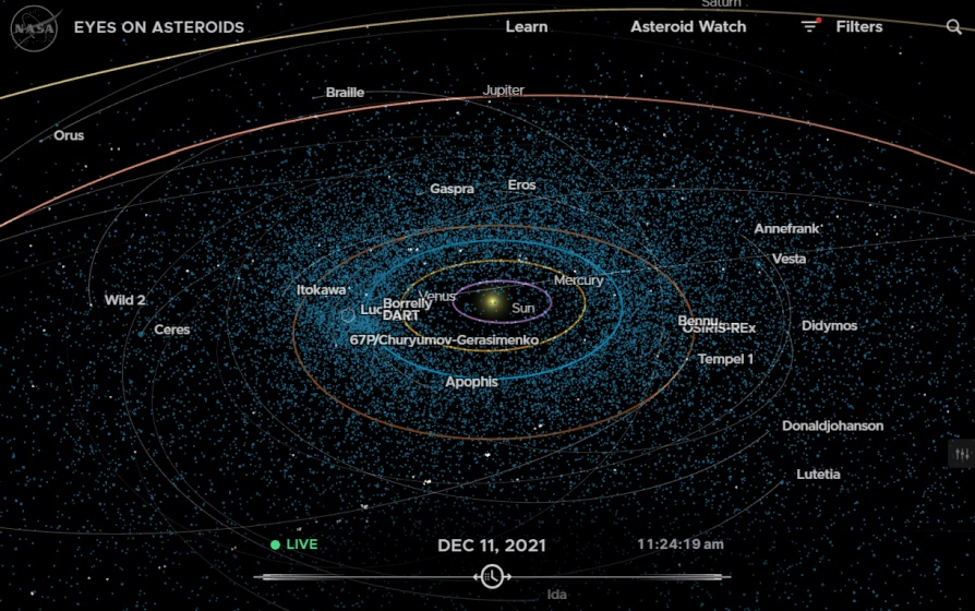 Eyes on Asteroids -niminen sovellus on osa Nasa Eyes -sovellusperhettä. Aiemmin siitä on julkaistu esimerkiksi luotainten, eksoplaneettojen ja maapallon tuoreen satelliittidatan visualisointeja.