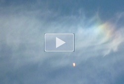 Pelkät sokkiaallot näkyvät tässä videossa parhaiten, mutta sivuaurinko erottuu vain ohimennen ja hyvin himmeästi oikealla puolella. (Ilmiön kirkkaus vaihteli johtuen katsojien eri sijainneista jääkidepilveen nähden).