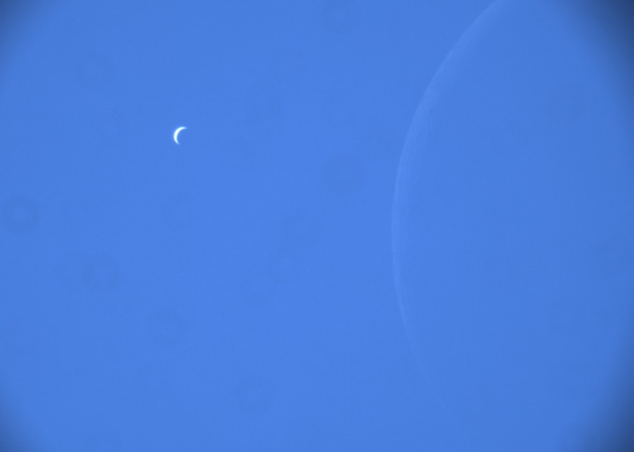 "Aluksi jännitti kohteiden löytäminen. Ovathan Venus ja Kuu paraikaa ohuina sirppeinä himmeitä ja kaiken lisäksi aika lähellä Aurinkoa, joten manuaalisesti kohde oli suhteellisen hankala etsiä", hän kertoo Taivaanvahdin havainnossaan.