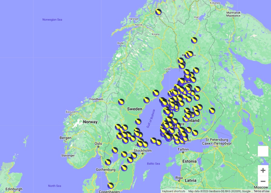 Ruotsalaisten havaintojen suurehko määrä kertoo paitsi tulipallon sijainnista Pohjanlahdella myös siitä, että ruotsalaiset käyttäjät ovat löytäneet Ursan Taivaanvahdin ruotsinkielisen käyttöliittymän.