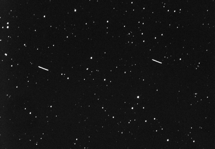 Ursan Taivaanvahti-palvelun havainnossa näkyy yhdistelmäkuvassa kaksi tähtitaustaa vasten liikkuvaa kohdetta. Ne ovat James Webb -teleskooppi ja sen rakettivaihe.