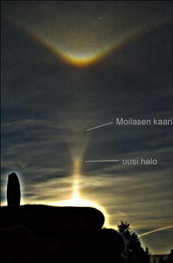 Ursalainen valoilmiöharrastaja Marko Riikonen on löytänyt uuden halomuodon. Ilmiö oli riittävän voimakas näkyäkseen selvästi paljain silmin ja siitä saatiin runsaasti todistusvoimaisia valokuvia. Uusi halo on V-kirjaimen muotoinen kaari, joka näkyi Auringon yläpuolella Rovaniemellä esiintyneessä halonäytelmässä 6. marraskuuta.